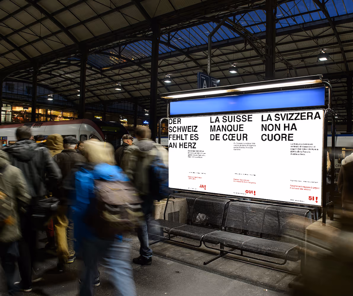 Schulprojekt: Texting und Plakate für die eidgenössische Volksinitiative «Organspende fördern – Leben retten». Die rein typografische Gestaltung gibt dem emotionalen Thema der Organspende argumentative Sachlichkeit. Auftrag fiktiv, nicht umgesetzt.