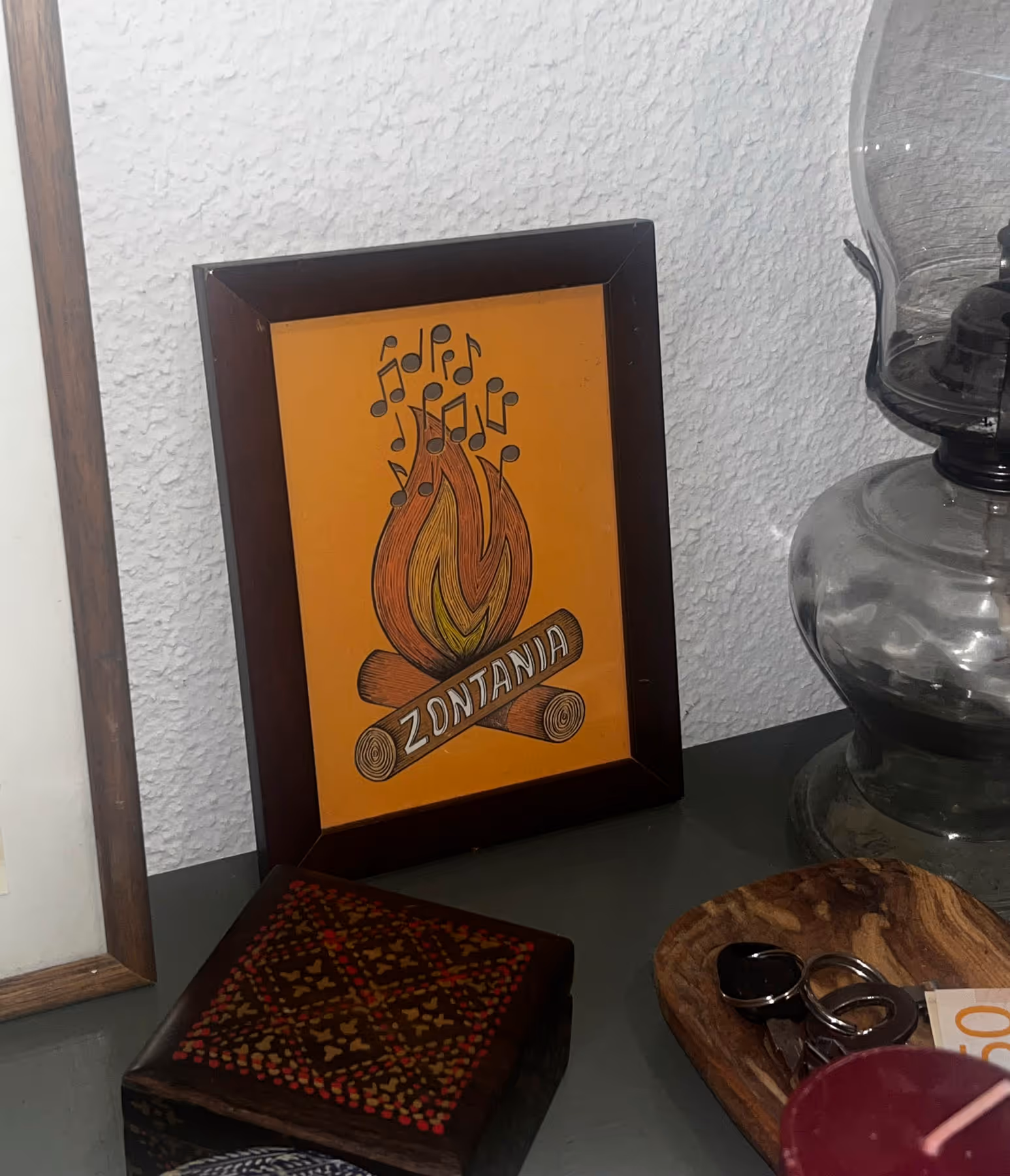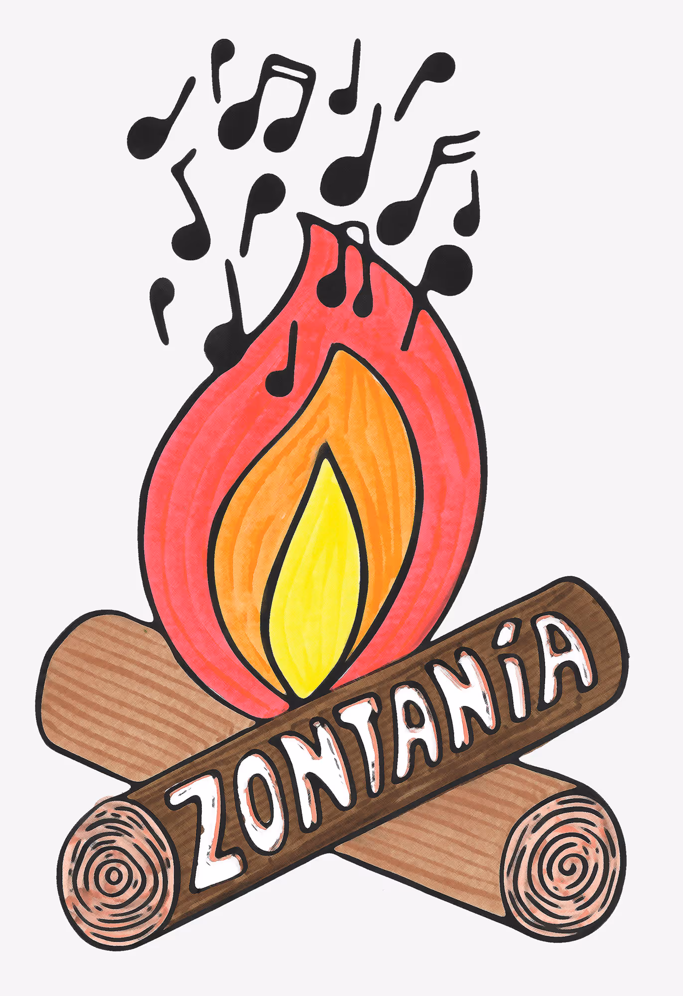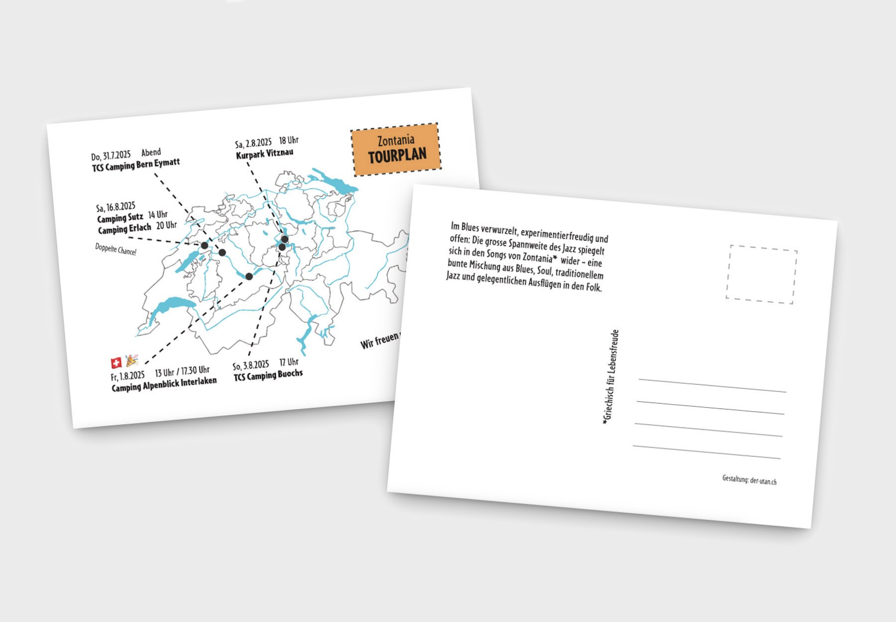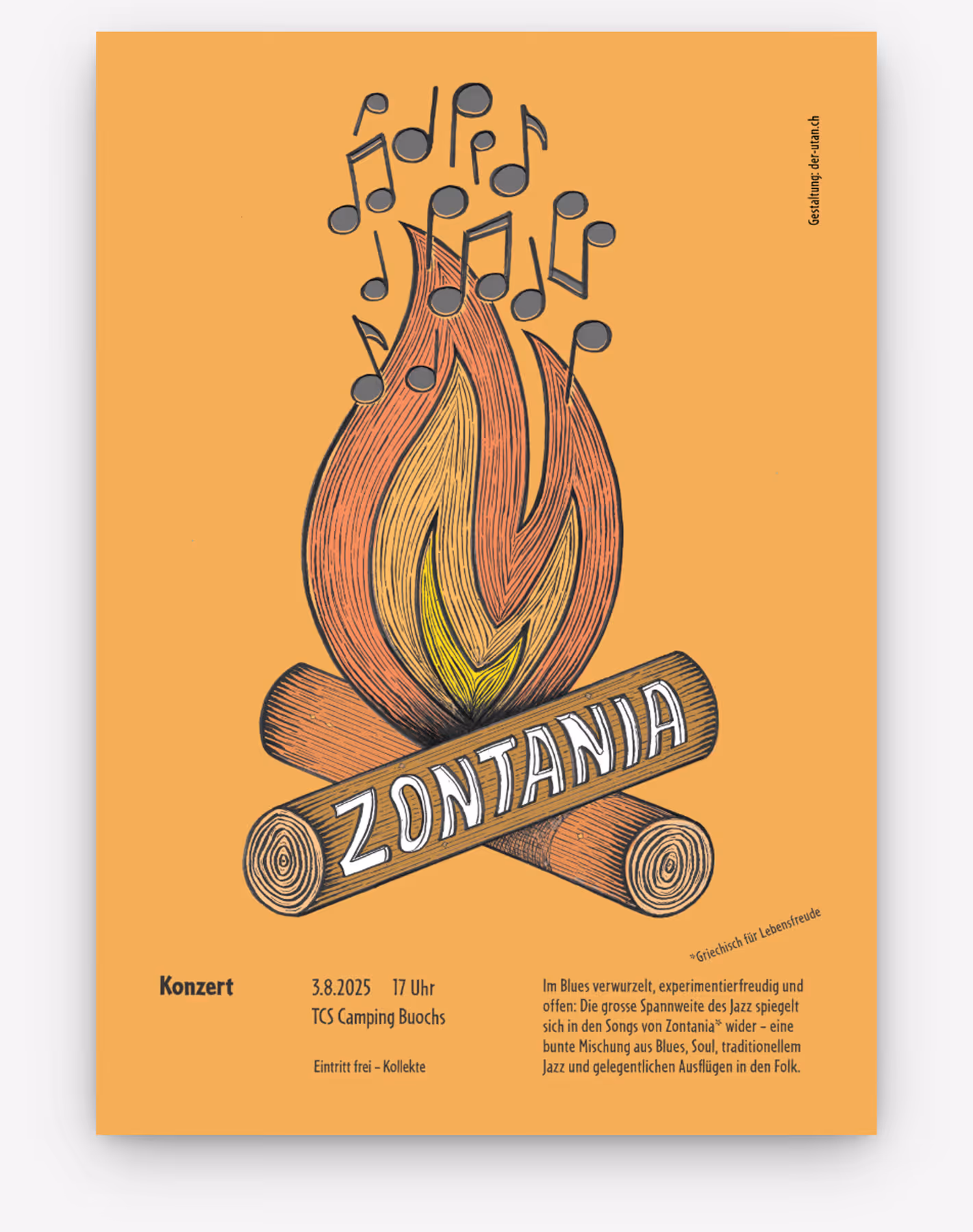 Plakat für Konzerttour der Band Zontania. Die Illustration nimmt Bezug zu den Spielorten der Tour: Campingplätze.