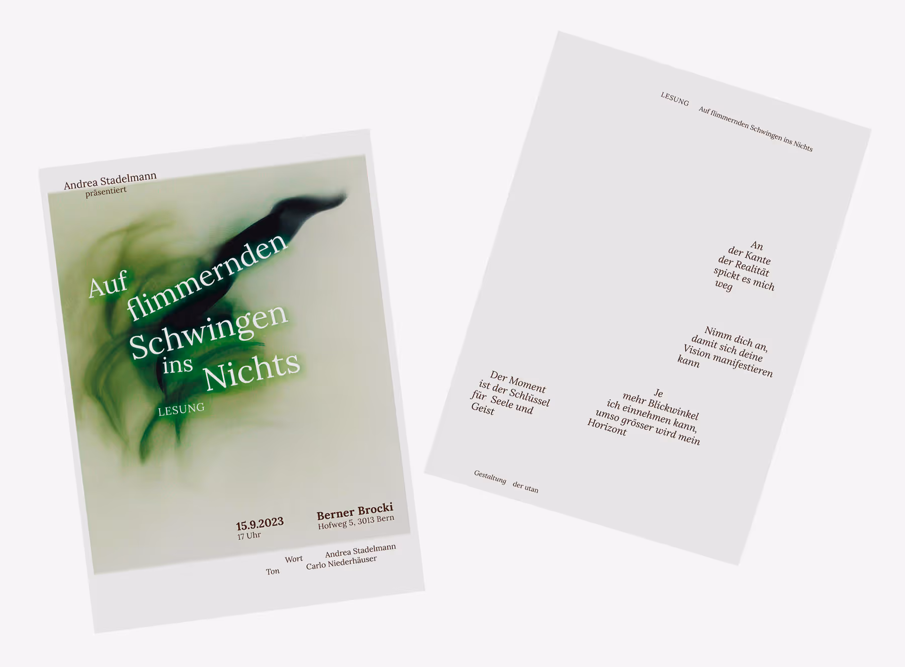 Flyer für Lesung «Auf flimmernden Schwingen ins Nichts»