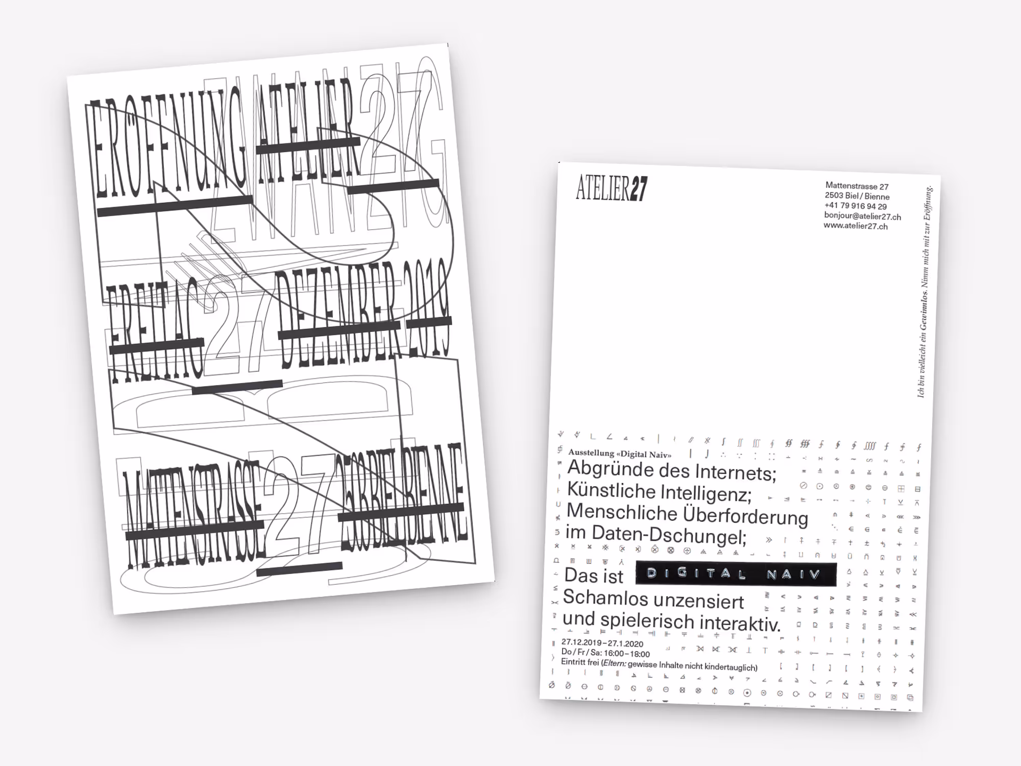Flyer für das «Atelier 27» und der Eröffnungs-Ausstellung «Digital Naiv» (Eigenauftrag)