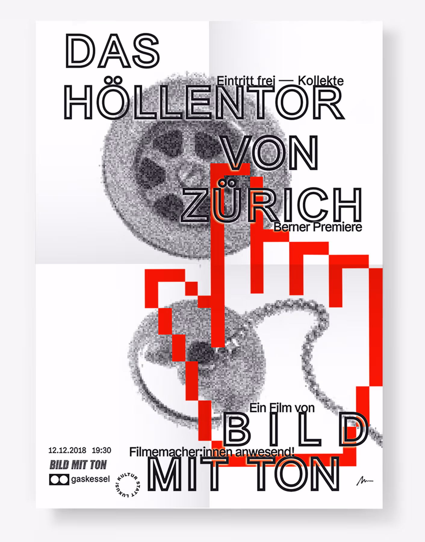 Plakat für das Filmscreening von «Das Höllentor von Zürich» im Gaskessel Bern. Das Sujet leitet sich aus der Filmhandlung ab: Der Finger der Protagonistin bleibt in der Badewanne stecken.