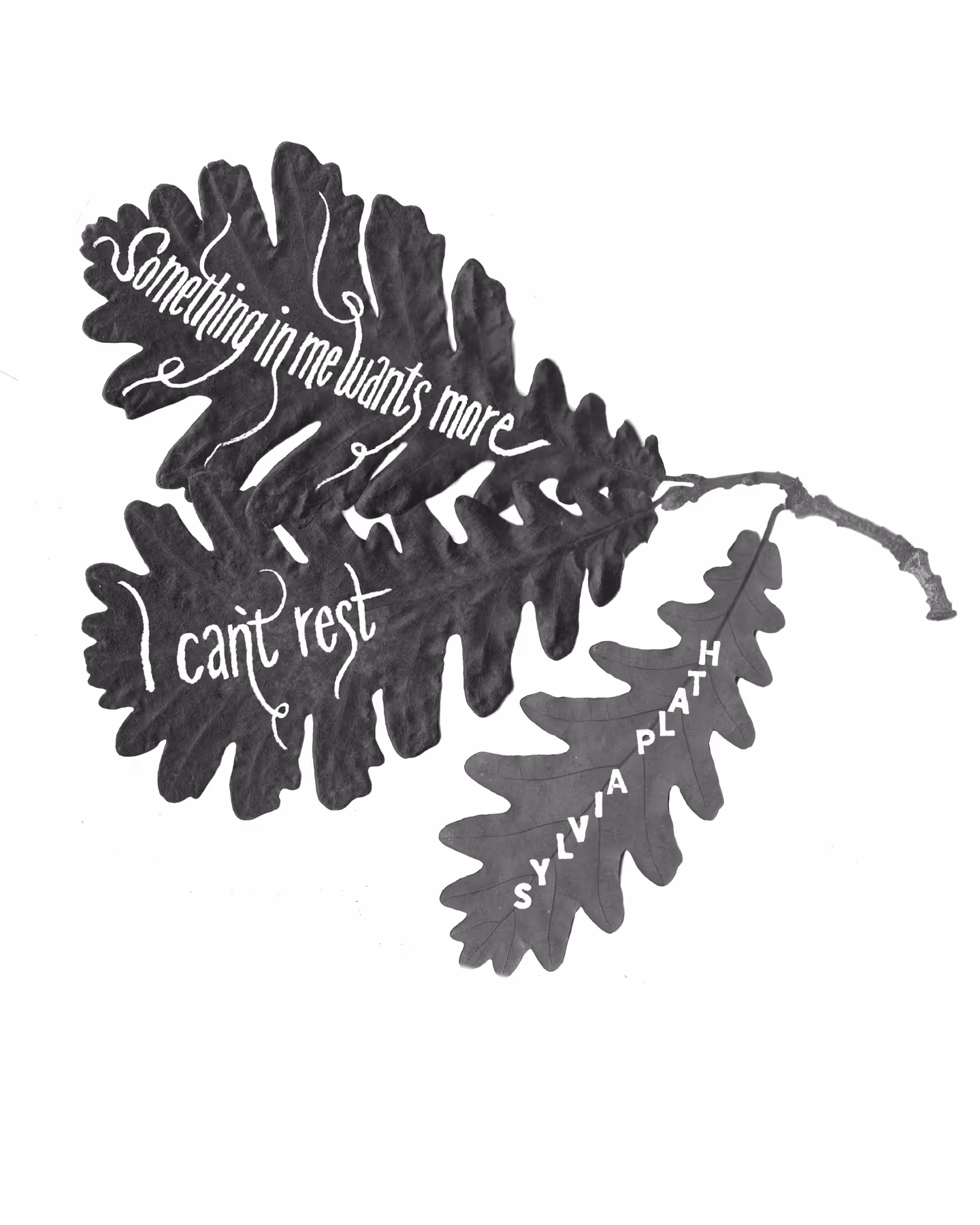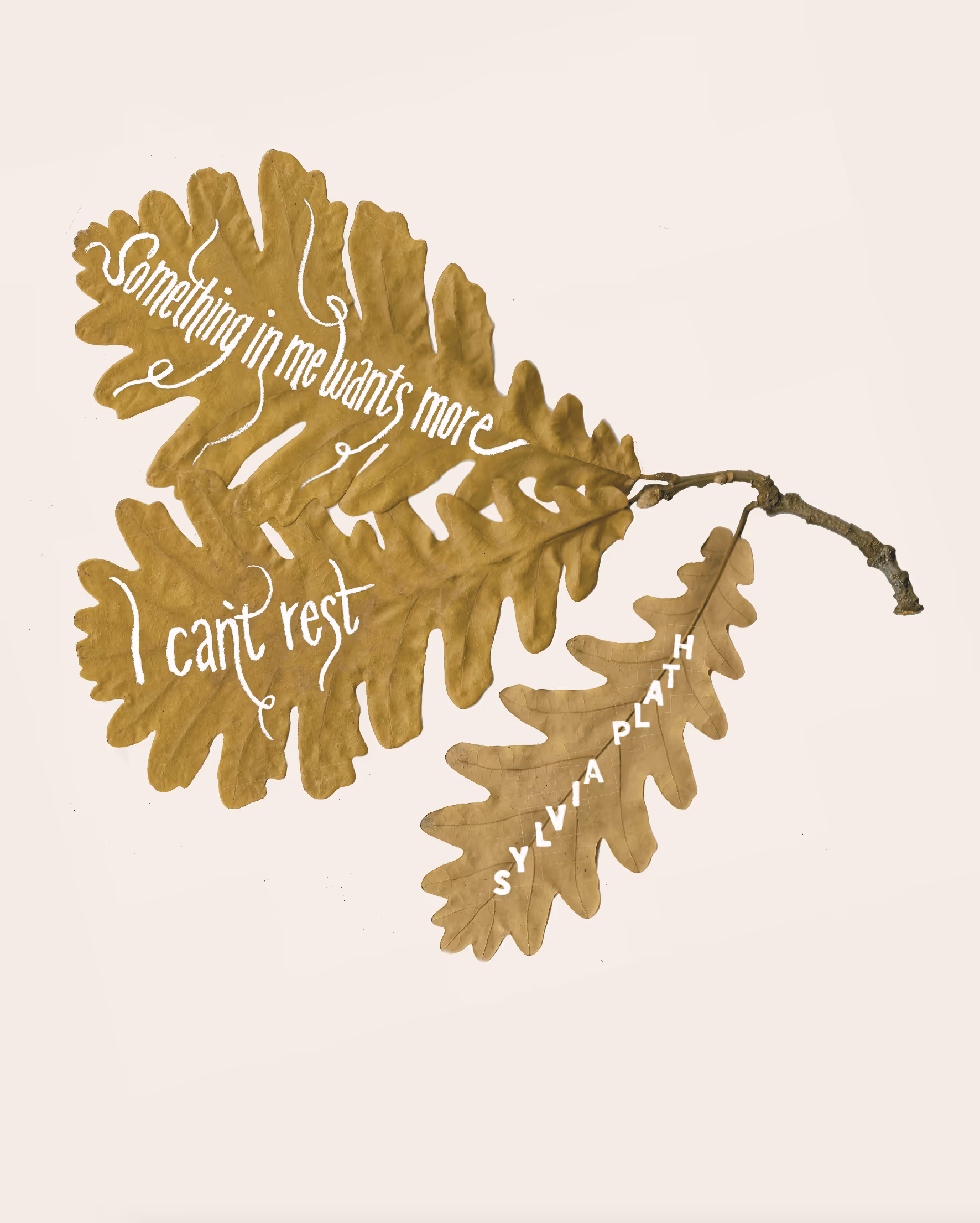 «Something in me wants more – I can’t rest.» Etwas an diesem Zitat von Sylvia Plath hat mich tief berührt. Es entstand dieses Schriftbild. Das Lettering ist filigran gezeichnet und das Motiv der Blätter ergab sich aus dem herbstlichen Wetter zur Zeit der Entstehung des Bildes..